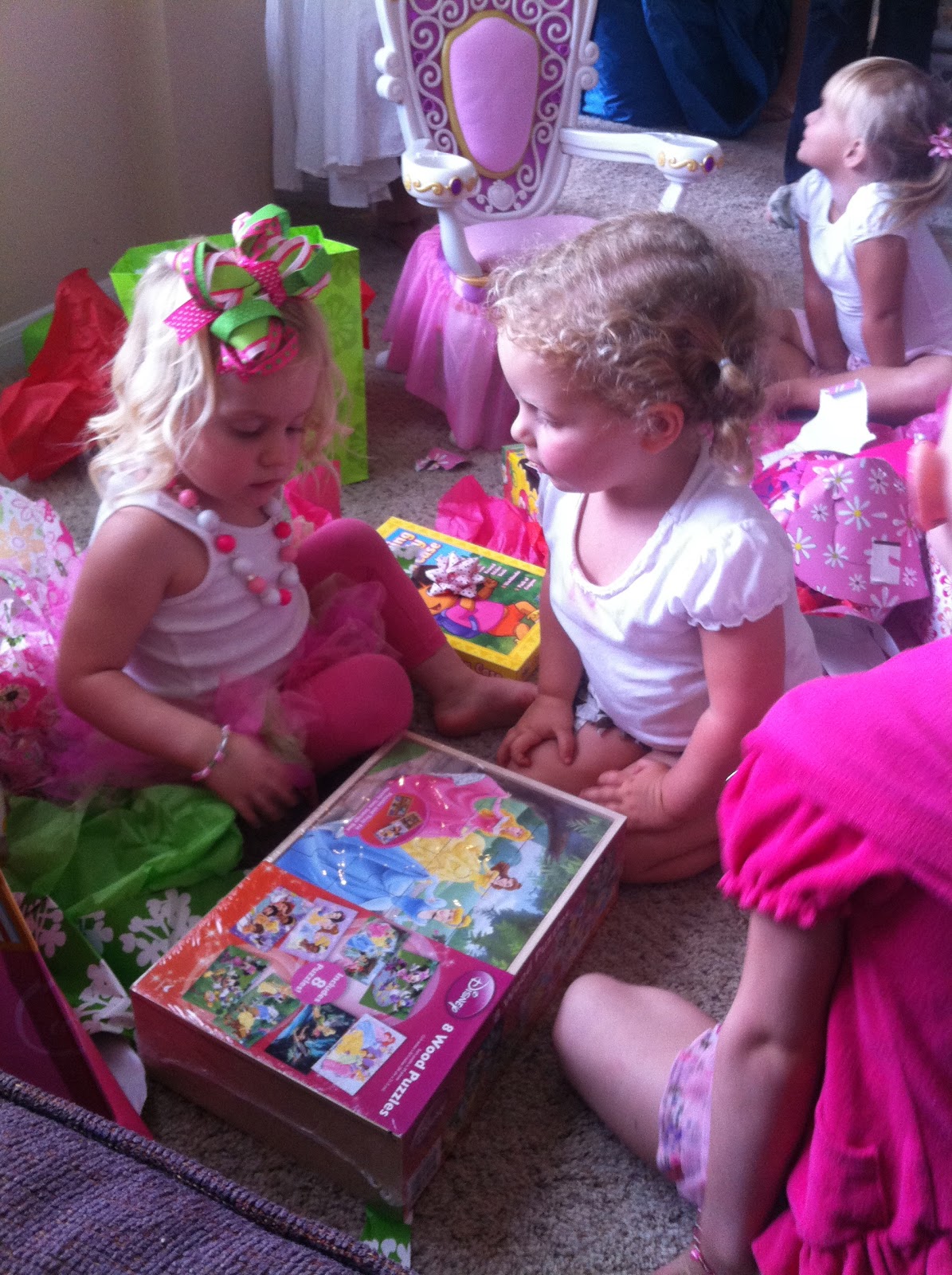 Pictures from her Strawberry Party. Our schedule is so crazy that time crept up on me and before I knew it we were a couple weeks away from Breklyn's birthday. I didn't have a lot of time to plan a party but I was able to pull it off. 3 of Breklyn's little girl friends came and 2 of Jaylie's came. They had fun and Breklyn loved every minute of it! We planned to have it at a park but it rained the day of her party so we had to do it in our house last minute. We had the car packed up with all the party stuff and everything and the second we got everything in the car it started pouring! Just our luck, but we really needed the rain so we didn't complain :) We blew up a bounce house in the living room and let them play in there, did cupcakes, a game, and then presents. You will notice in the pictures below that Breklyns cheeks are all red. It was from playing so hard in the bounce house! Thank you to everyone who came!